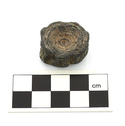 Fragments of fossil wood are very common on the London Clay foreshore of the beach at this site. With their grain and sometimes (as in this specimen) knots and/or bark, they look like wood, and they can be assigned to their formation from their match to similar specimens from the London Clay in Kent and Essex (Rayner et al. 2009: 217). [F_167]